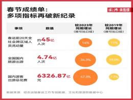 2月17日,史上最長春節(jié)假期正式結(jié)束! 文旅“成績單”相繼出爐,多項出行指標(biāo)再破新紀(jì)錄。 經(jīng)文化和旅游部數(shù)據(jù)中心測算,2024年春節(jié)假期8天全國國內(nèi)旅游出游4.74億人次,同比增長34.3%,按可比口徑較2019年同期增長19.0%;國......