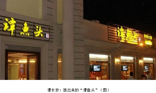 [摘要] “譚魚頭”做得很火的時候,成都滿大街都冒出了魚頭火鍋,而譚長安不僅精明還很有計劃。表面上看‘譚魚頭’是在開店,其實是在把無形資產資本化。