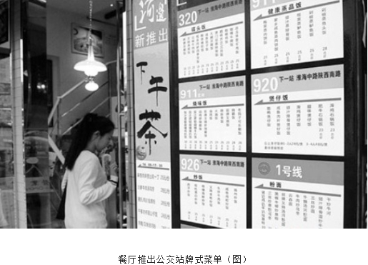 日前,一份特色“公交站牌式菜單”引來路人駐足圍觀,而據(jù)餐廳經(jīng)理透露,自從增設(shè)了這塊“站牌”,餐廳的生意也受到了積極的影響。