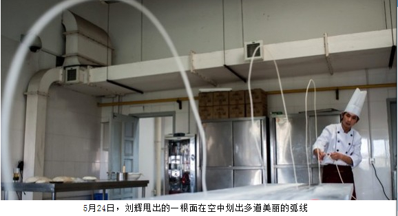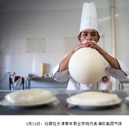 日前,劉輝在上海大世界吉尼斯紀錄挑戰中,甩出一根1918米的面,打破原“南詔一根面”1704米的世界紀錄,同時用面團吹出直徑1.5米的“氣球”,獲得“最長一根面”和“直徑最大的面團氣球”兩項上海大世界吉尼斯紀錄。22歲的天津青年職業學院烹飪系教師劉輝,來自山西太原,學習面食技藝已經5年多,堪稱面食“達人”。