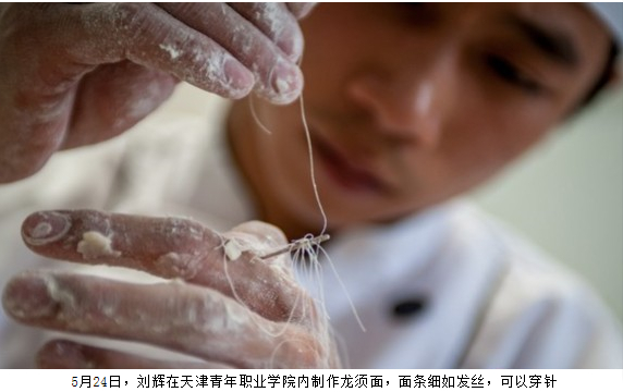 [摘要] 22歲劉輝是一個面食“達人”,目前已經創造兩項吉尼斯紀錄。他可以吹氣球,他制作的龍須面,面條細如發絲,可以穿針。劉輝在上海大世界吉尼斯紀錄挑戰中,甩出一根1918米的面,打破原“南詔一根面”1704米的世界紀錄,同時用面團吹出直徑1.5米的“氣球”,獲得“最長一根面”和“直徑最大的面團氣球”兩項上海大世界吉尼斯紀錄。22歲的天津青年職業學院烹飪系教師劉輝,來自山西太原,學習面食技藝已經5年多,堪稱面食“達人”。