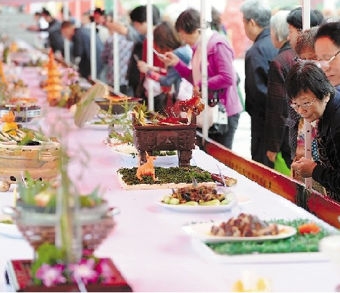 一年一度“中國?臨安百筍宴美食文化節(jié)”上,臨安市28家主要餐飲企業(yè)為市民獻上一桌桌獨具匠心的筍宴和百余只筍菜,引來眾多食客圍觀。梁臻、張偉星攝