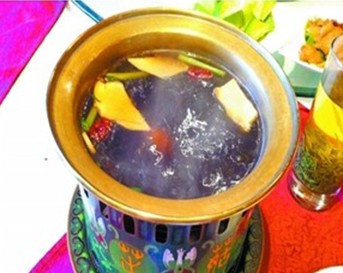 “野生菌滋補保健火鍋湯”由各種名貴野生菌精配調(diào)制而成,具有清熱解毒、養(yǎng)血和中、滋補肝腎、舒筋活血等功效。