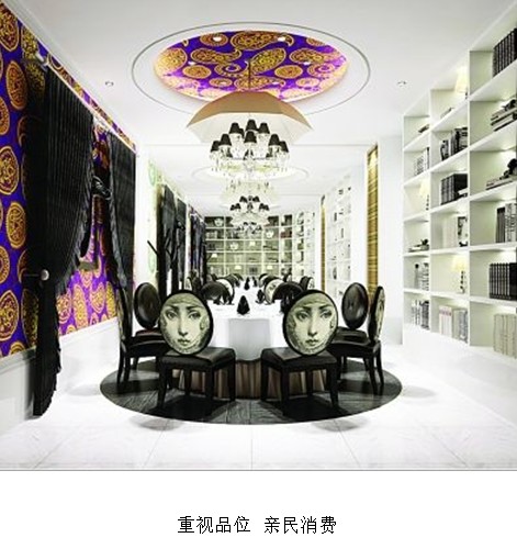 創(chuàng)意川湘菜餐廳呈現(xiàn)時(shí)尚、新潮的設(shè)計(jì)風(fēng)格,店內(nèi)家具均以白色皮革箱造型為主,透露出溫馨的歸屬感和留洋小資品位;整體色彩純凈,弧形墻體、剔透的鳥籠及觸手可及迎面撲來雅致的書櫥使空間富于流動(dòng)和變化;天棚掛懸的小胖白天使裝飾物進(jìn)一步豐富了視覺空間,卡座以及四周炫目的世界一線奢侈品牌的彩繪圖案,使得店內(nèi)空間充滿了活力的跳躍感,彌漫著時(shí)尚青年向往的留洋生活氣息。