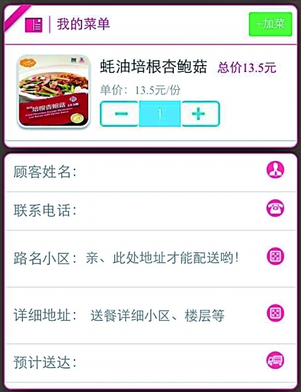 昨日,記者嘗試著用手機加上重慶多家餐飲店的官方微信賬號,進入點餐頁面,上面列著各種菜品和酒水的名稱、價格及實物圖片,點擊想要的菜品,按照要求填寫姓名、電話和地址等信息,再點擊提交,一份訂單就發送出去了。