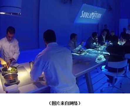 其實,一家名為El Celler de Can Roca餐廳也發揮過類似的創意。該餐廳利用投影儀、噴霧器等營造氛圍,圍繞歷史、記憶、山水和詩歌幾個主題,把12位客人安排在圓桌前用餐,讓食客們在諸多截然不同世界中“轉換自如”,一會兒去月球喝飲料,一會兒又深入漆黑森林大快。