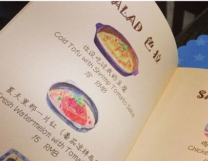 餐廳最大的亮點之一在于菜單,提供各種創意菜式,“紙牌屋肋骨、來自星星的炸雞、你沒吃過我的豆腐…”菜名都非常的寫意,菜名都非常有意思,同時又緊跟時下潮流元素,讓人有沖動每道菜都點上一遍。