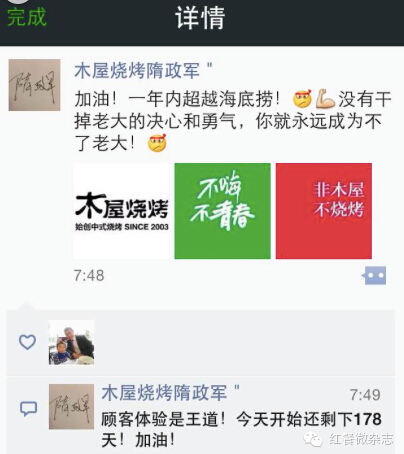 比起宣布獲得1億風投這一消息時的低調,隋政軍在“一年內超越海底撈”這件事情上卻顯得格外高調,每天清晨,隋政軍的第一件事就是發一條這樣的朋友圈,不是示威、不是強迫,這是激勵,是奮斗,是堅持,是一個成功創業者應有的理想。恐怕沒有幾個人敢像他一樣每天把自己的目標重復一次,被所有認識的人監督。 低調做慈善 打造懂得感恩的團隊。